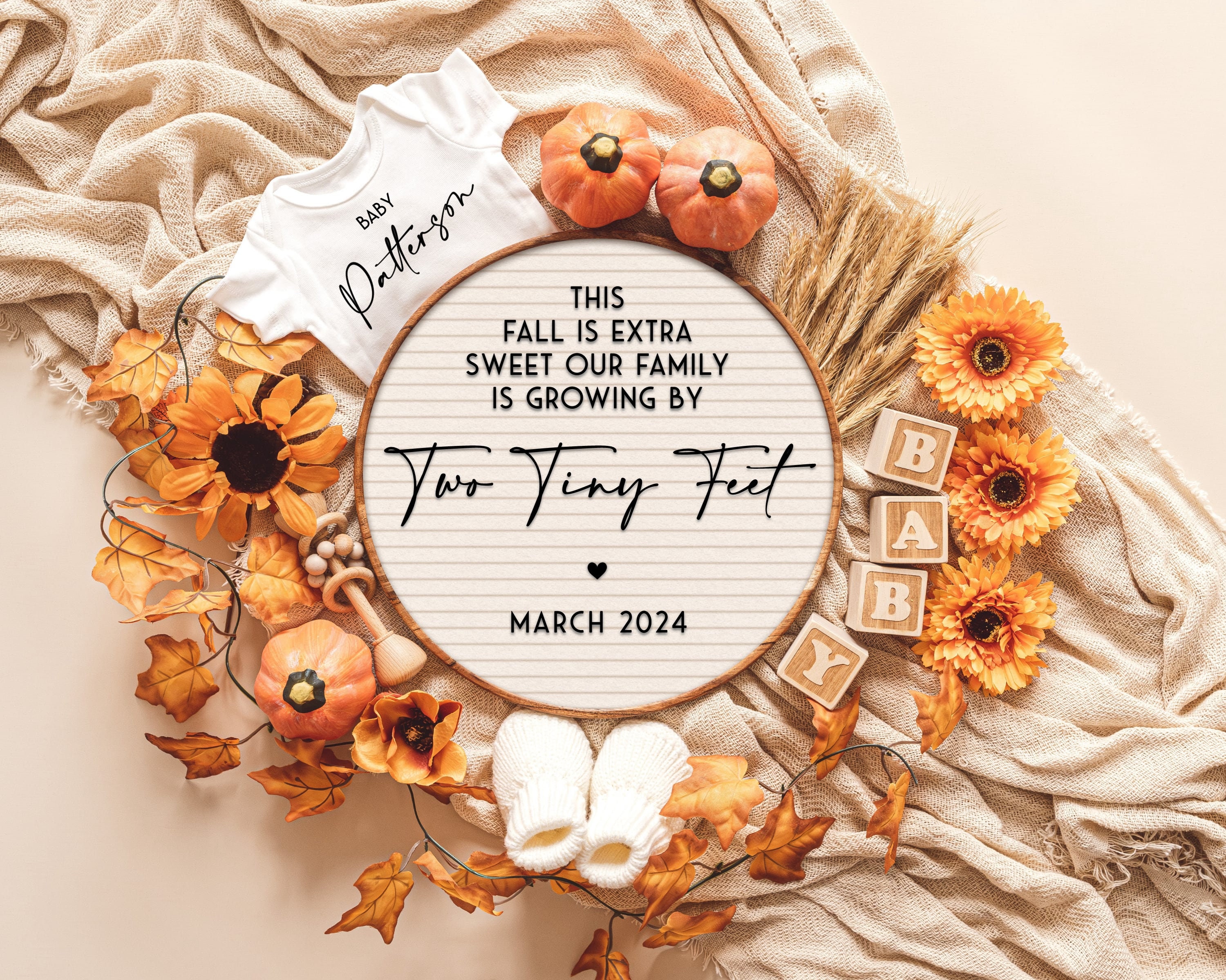 Fall Digital Pregnancy Announcement for Social Media Instagram Etsy